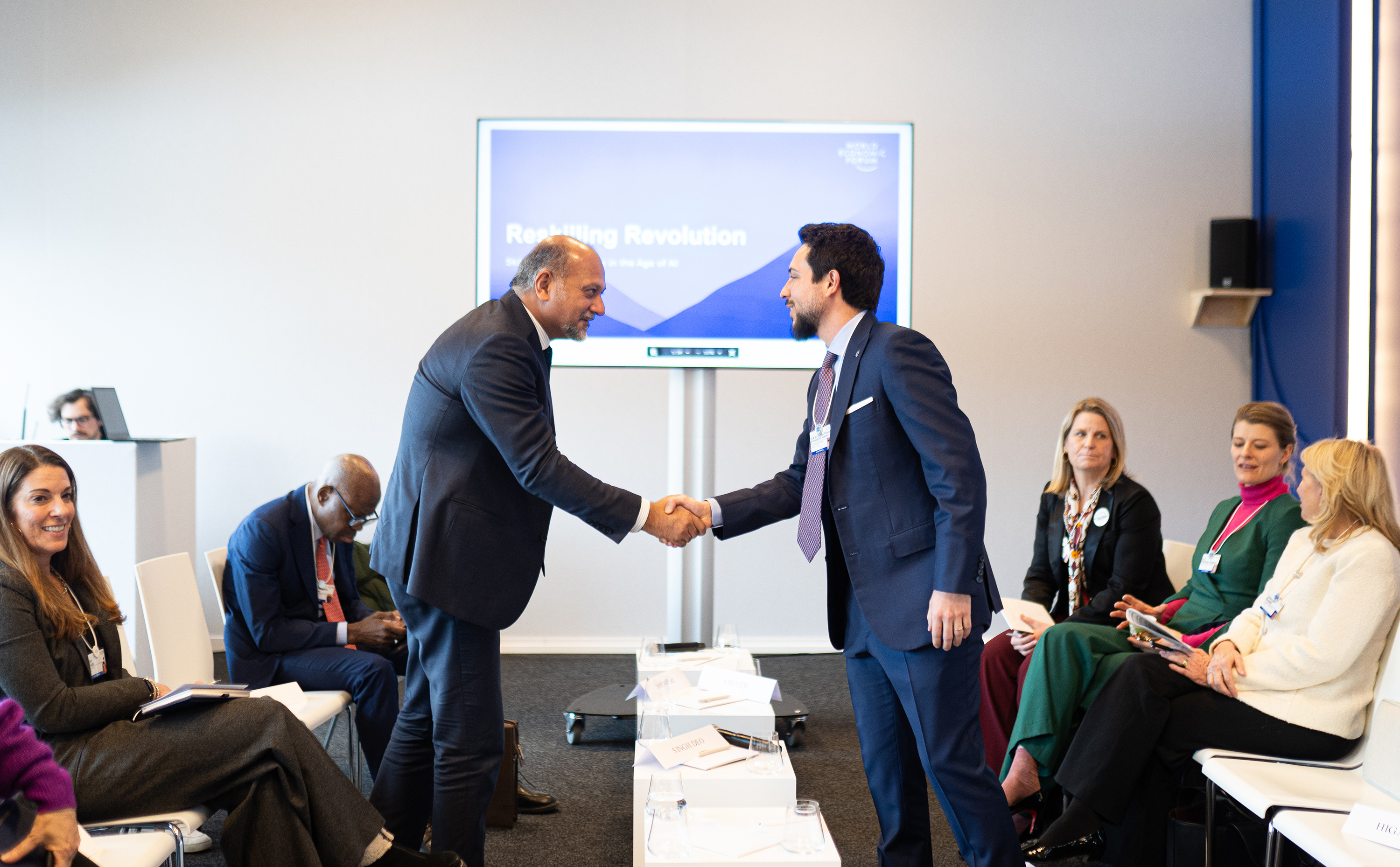 مندوبا عن جلالة الملك عبدالله الثاني، شارك سمو الأمير الحسين بن عبدالله الثاني ولي العهد، اليوم الأربعاء، بأعمال المنتدى الاقتصادي العالمي في دورته الخامسة والخمسين، المنعقد في مدينة دافوس السويسرية.